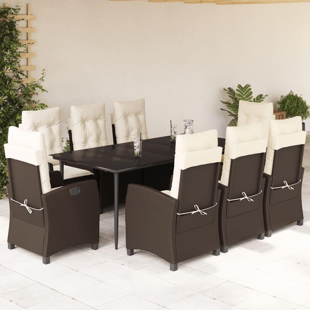 Spisebordssæt til haven 9 dele med hynder polyrattan og stål