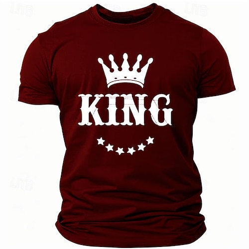 Herren Übergröße Groß Hoch T Shirt Tee Grafik-T-Shirt mit Krone und Buchstaben Rundhalsausschnitt Schwarz Weiß Rote Kurze Ärmel Outdoor Ausgehen Bedruckt Buchstabe Bekleidung Baumwollmischung