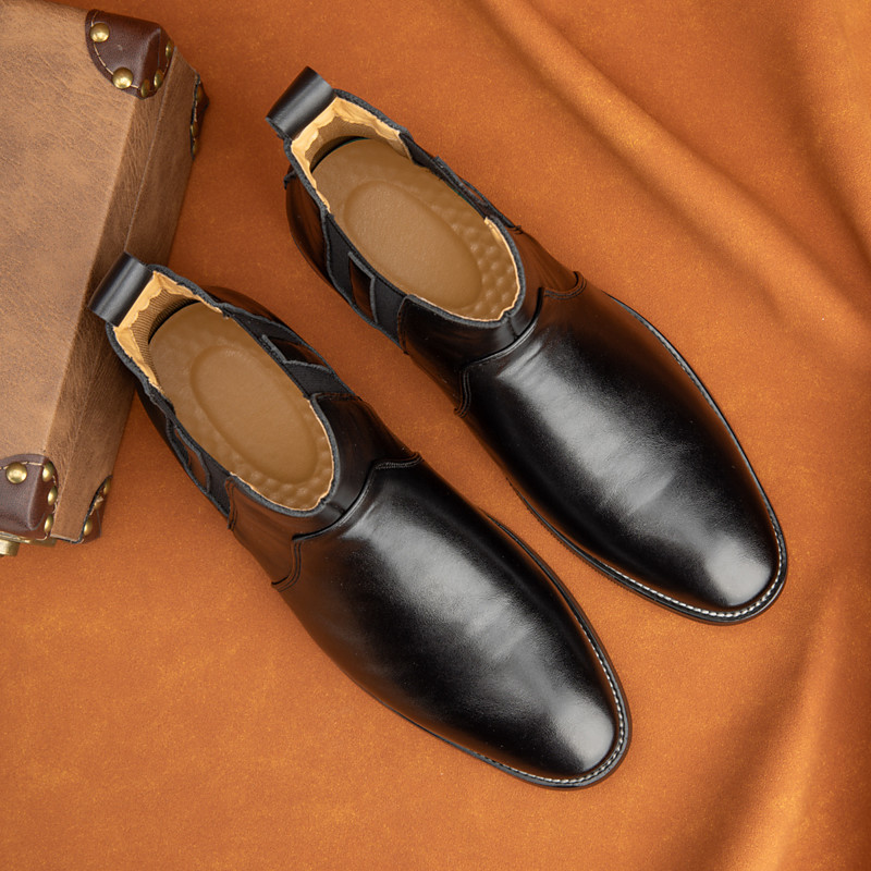 Men's Black Slip-On Faux Leather Boots – Comfortable and Sleek Design, Perfect for Casual Wear and Winter Outings