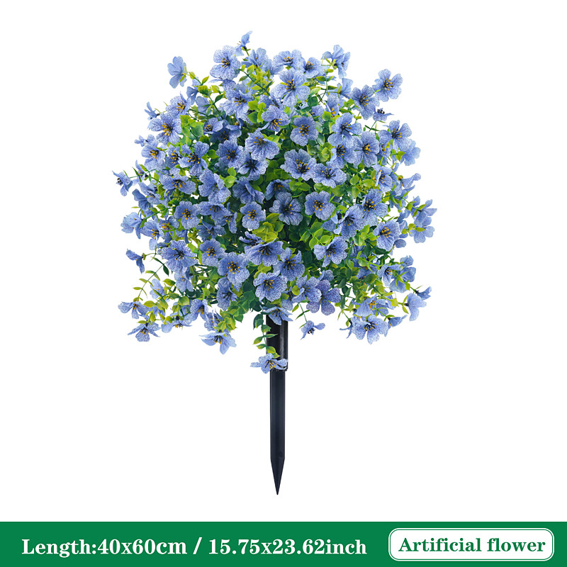 Outdoor Artificial Flower Bush Decoration with Ground Spikes, Faux Eucalyptus and Violet Garden Stakes for Yard, Patio, Home Decor, Spring Summer Greenery