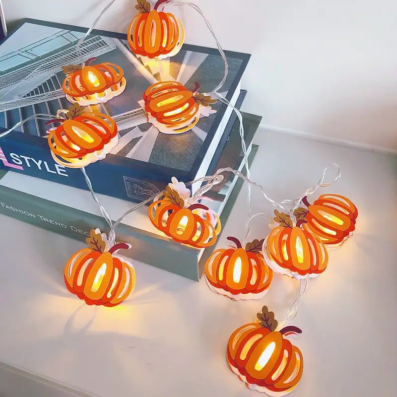 Thanksgiving Iron Pumpkin Maple Leaf Lamp 1.65m 10LED Battery Operated Autumn Wreath Thanksgiving Party Home Living Room Bedroom Garden Balcony Porch Decoration