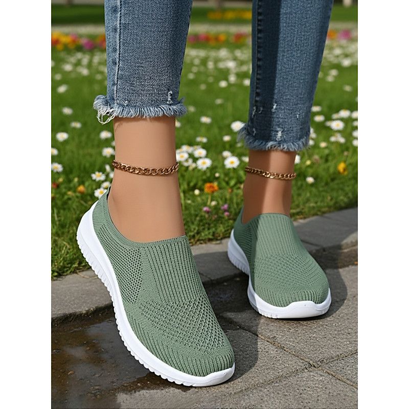 Women's Breathable Knit Slip-On Walking Shoes – Lightweight Stretch Mesh Mules for Travel, Daily Wear, Shopping and Outdoor Walking