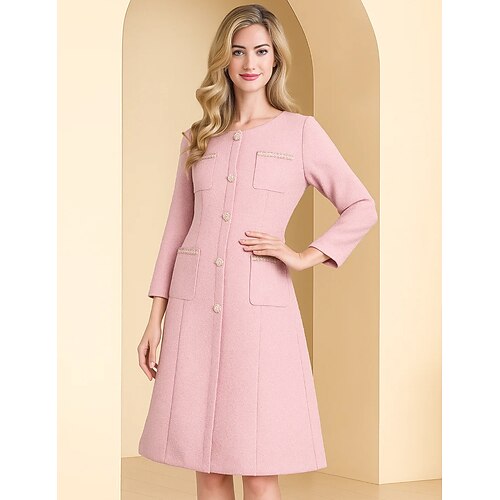 Abito midi in cotone e lino da donna Abito a linea Vestito estivo Casual Adeguato aderente Semplice Manica corta Collo a giro Navy Rosso Verde militare Estate