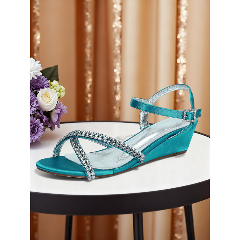 Women's Pearl-Embellished Wedge Heels – Elegant Open-Toe Wedding Sandals for Brides and Formal Occasions