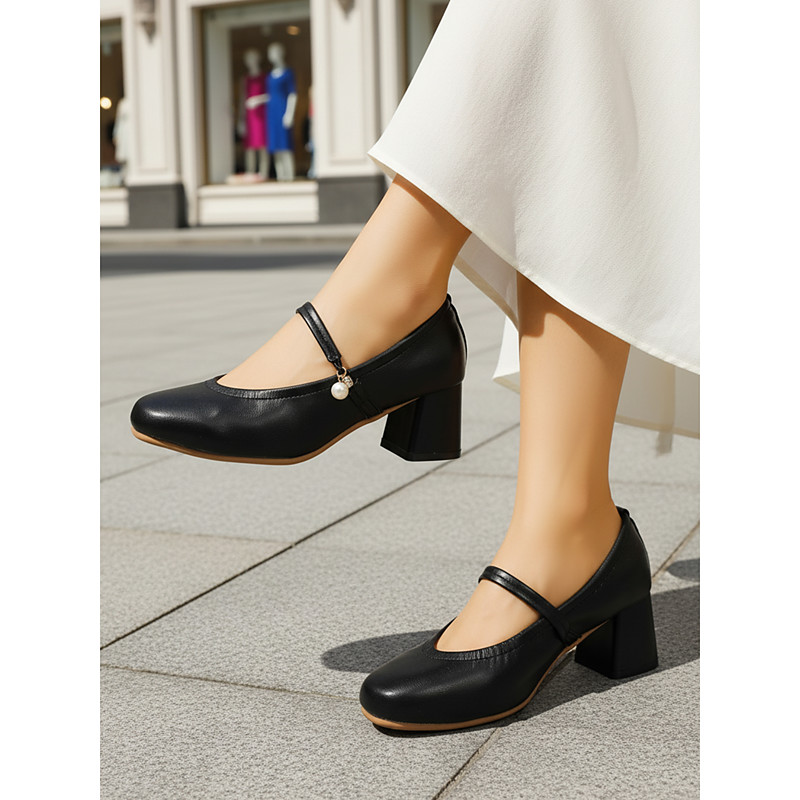 Women's Brown Chunky Platform Loafer Heels with Slingback Strap – Retro 1950s Style Block Heel Pumps for Fashion Events, Streetwear, and Daily Wear