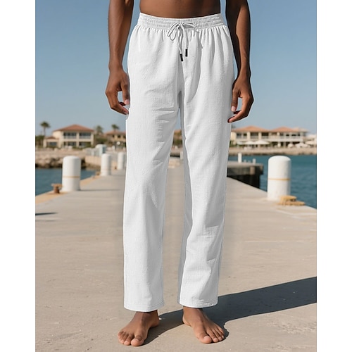 Per uomo Pantaloni di Lino Pantaloni Pantaloni Estivi Pantaloni da Spiaggia Tasca Semplice Comodità Traspirante Vacanza Quotidiano Ferie Hawaiano Boho Nero Bianco
