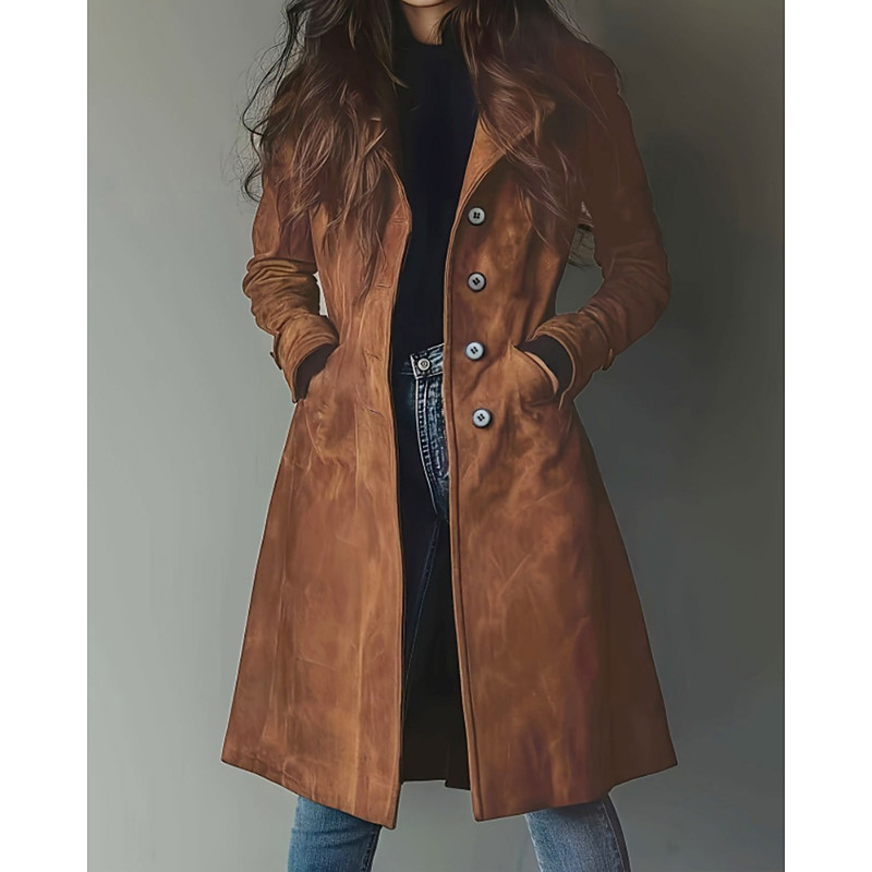 Women's Coat Warm Comfortable Pocket Buttons Elegant Casual Solid Color Vacation Street Casual Daily Wear Long Turndown Regular Fit Long Sleeve Outerwear Coffee Fall Winter
