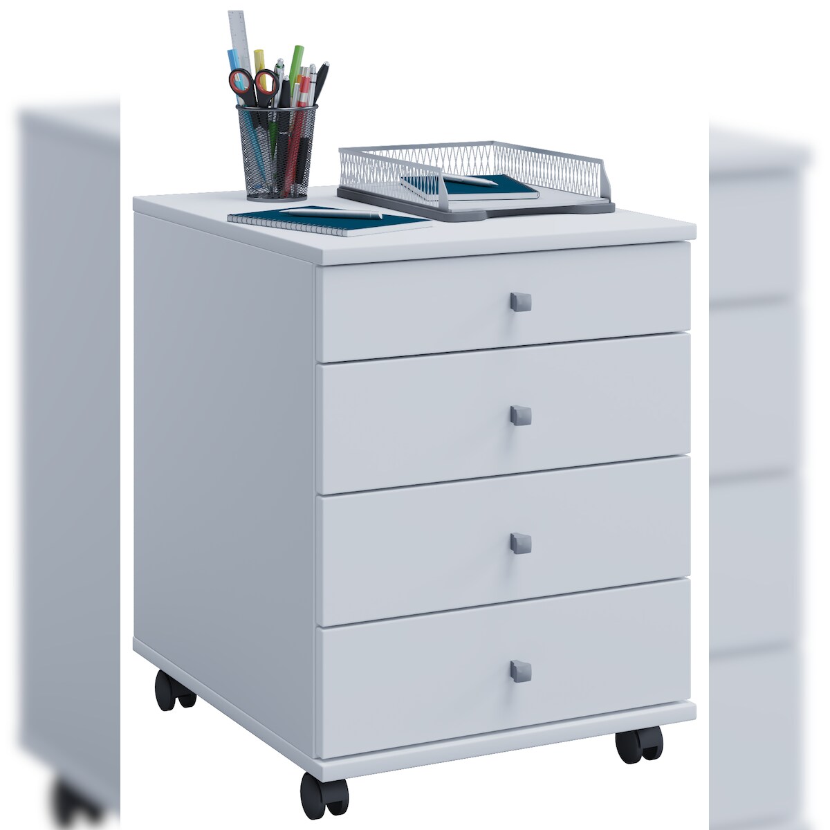 VCM Lona Büro Kommode , Schubladenabschnitt, Kassette auf Rädern mit 4 Schubladen Weiß.