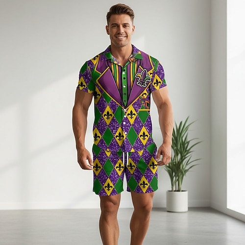Mardi Gras 2026 Karneval Perlenketten Cosplay Mardi-Gras-Farben Erwachsene Herren Damen Karneval Fetter Dienstag Karnevalsparade Party Leistung Einfaches Karnevalskostüm Verkleiden
