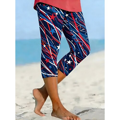 Unabhängigkeitstag Patriotische Damen Capri-Hosen Leggings Urlaub Vintage Mode Wadenlänge Hohe Taille Hose Grafik Flaggen Druck Komfortweich Atmungsaktiv Dehnbar Leger Täglich Büro Wassermelone
