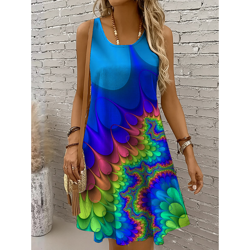 Women's Mini Dress A Line Dress Off The Shoulder Dress Vacation Casual Regular Fit Ombre Graphic Abstract Sleeveless U Neck Yellow Red Royal Blue Blue Summer Spring