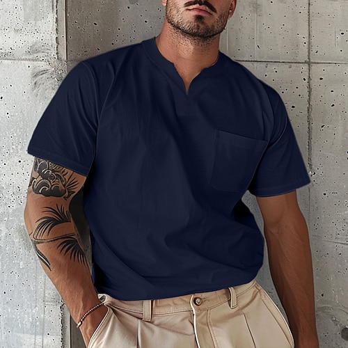 Herren T Shirt T-Shirt Kurzarm V Ausschnitt Sommer Einfach Mode Designer Basic Knöpfe Fronttasche Urlaub Ausgehen Alltagstauglich Hellblau Armee-Grün Marineblau Top T-Shirt für Herren