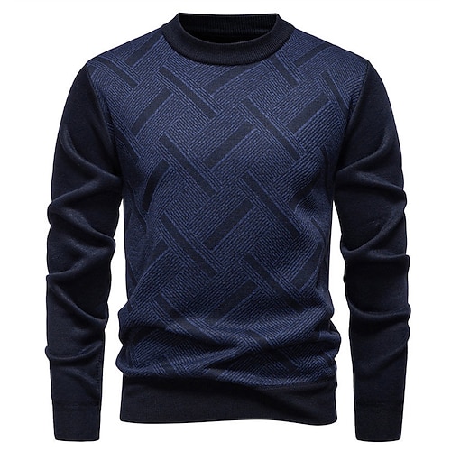 Per uomo Maglione Maglione a maglia A Coste Maglia Top Regolari Lavorato a maglia Geometrico Girocollo Moda Essenziale Vacanza Abbigliamento quotidiano Abbigliamento Autunno Inverno Blu Vinaccia L
