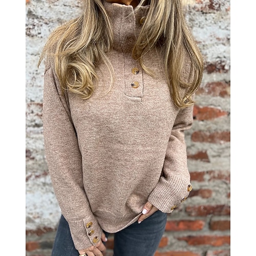 Per donna Felpa Maglione Vintage Moda Streetwear Tinta unica Dolcevita Bottoni Lavorato a maglia Manica Lunga Top Regolari Maglia Quotidiano Ferie Uscire Nero Blu Autunno Inverno