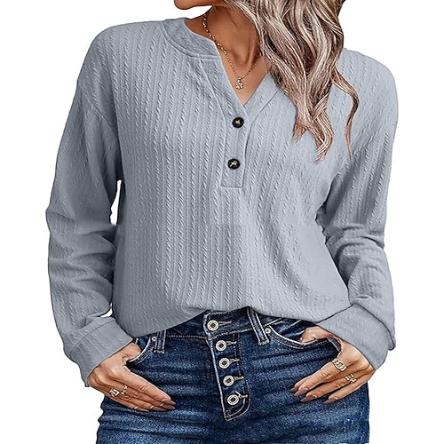 Per donna Blusa con texture Maglietta Semplice Casual Manica Lunga Girocollo Top Regolari Quotidiano Weekend Nero Vino Verde militare Blu Marrone Autunno