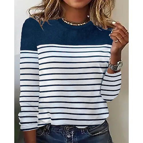 Per donna Blusa Grafico A righe Vintage Tropicale Elegante Manica Lunga Girocollo Top Regolari Quotidiano Ferie Uscire Patchwork Nero Bianco Blu marino Autunno Inverno