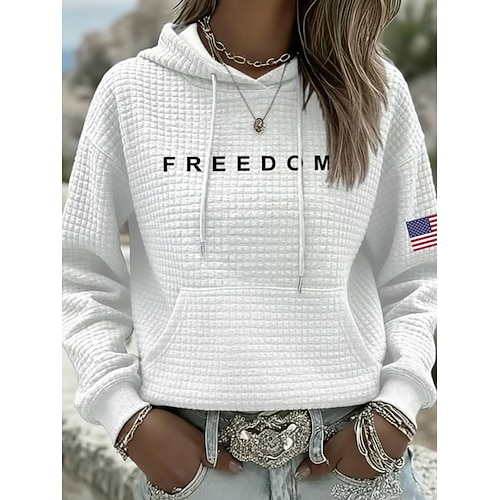 Per donna Felpa con cappuccio Grafico Lettera Casual Manica Lunga Con Cappuccio Top Regolari Casuale Streetwear Abbigliamento Quotidiano Tasca Stampato Nero Bianco Grigio Primavera Autunno