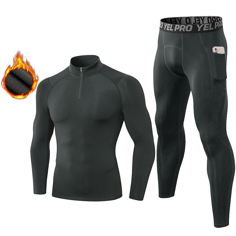 Men's Workout Suits Base Layer Top Bottom 2 Piece Sports Set with Fleece Lined Solid Colored Clothing Suit Fall Winter Black White Spandex Gym Basketball Athletic High Waist Quick Dry Warm