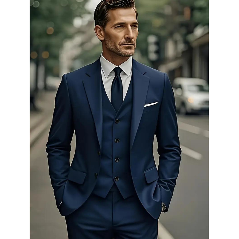 Men's Wedding Winter Wedding Suits Black Daily Business Solid Colored Standard Fit 3 Piece Single Breasted Two-buttons