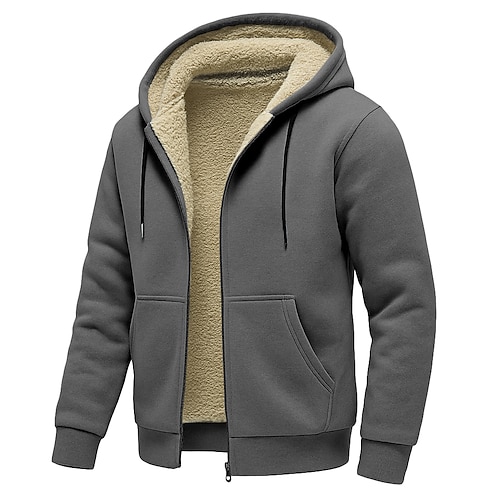 Per uomo Felpa con cappuccio Felpa con cappuccio in pile Felpa con cappuccio foderata in pile Nero Rosso Grigio chiaro Grigio scuro Beige Con Cappuccio Semplice Tasca a marsupio Casuale Quotidiano