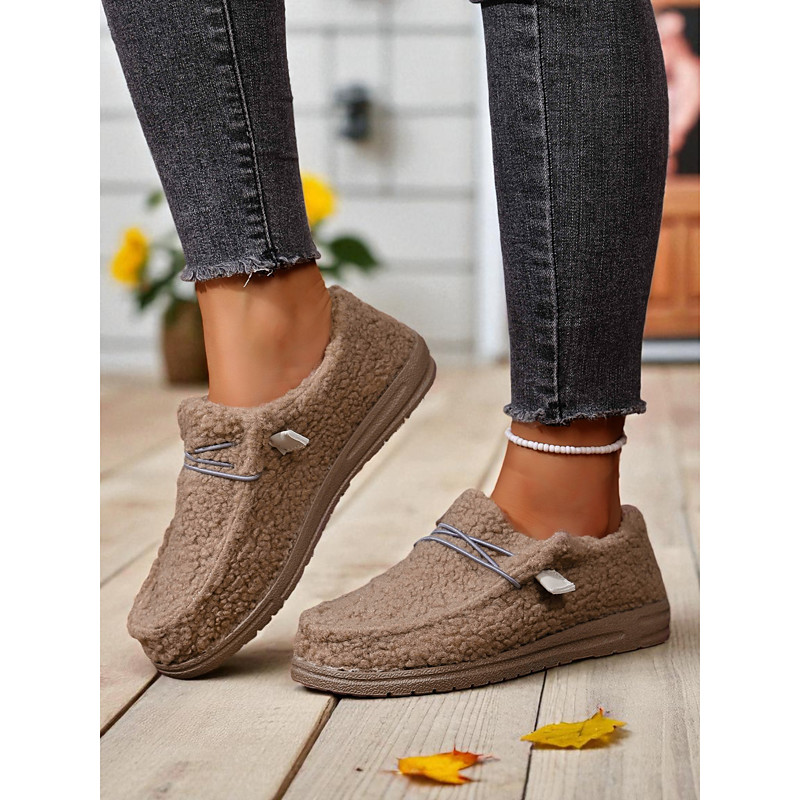 Women's Fuzzy Rose Pink Loafer - Warm Plush Shoes, Cozy Non-Slip Winter Home Footwear for Relaxing and Casual Outfits