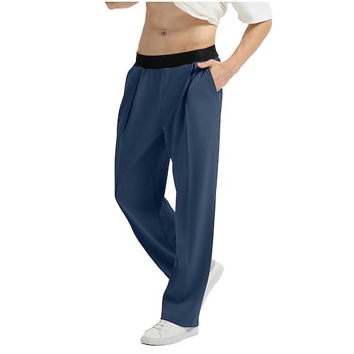 Per uomo Pantaloni Pantaloni casual Tasca Elastico in vita Blocco di colori Comodità Lunghezza intera Quotidiano Casa All'aperto Semplice Stile Classico Nero Blu marino Inelastico