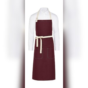 SANTORINI - Contrasted Bib Apron with Pocket: One Size / Burgundy