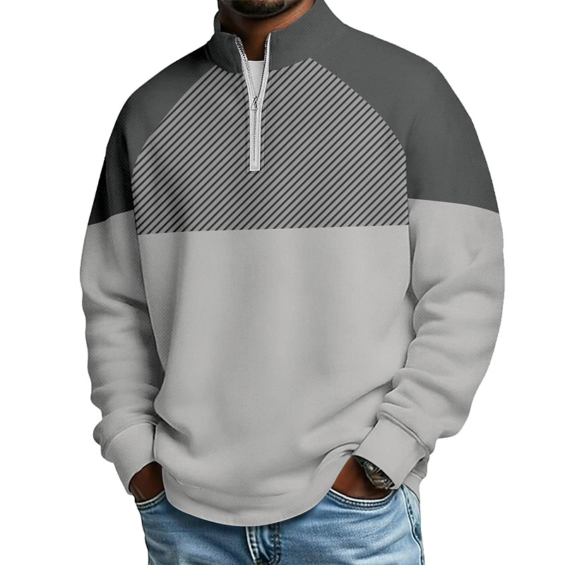 Men's Color Block Zip Polo Shirts Long Sleeve Polo Shirts Grandad Collar Casual School Athleisure Holiday Daily Wear 3D Print Quarter Zip Polo Spring Fall Winter Blue Navy Blue Sky Blue