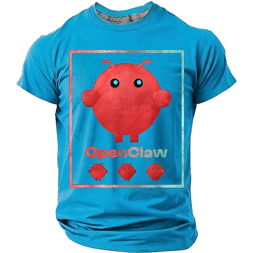 Herren-T-Shirt mit Maskottchen-Roboter-Openclaw-KI-Hummer-Tech-Geek-Programmierer-KI-Agent-Motiv, Grafik, normale Passform, Kurzarm, Rundhalsausschnitt, Freizeitkleidung, Designer-Bekleidung, Größen: