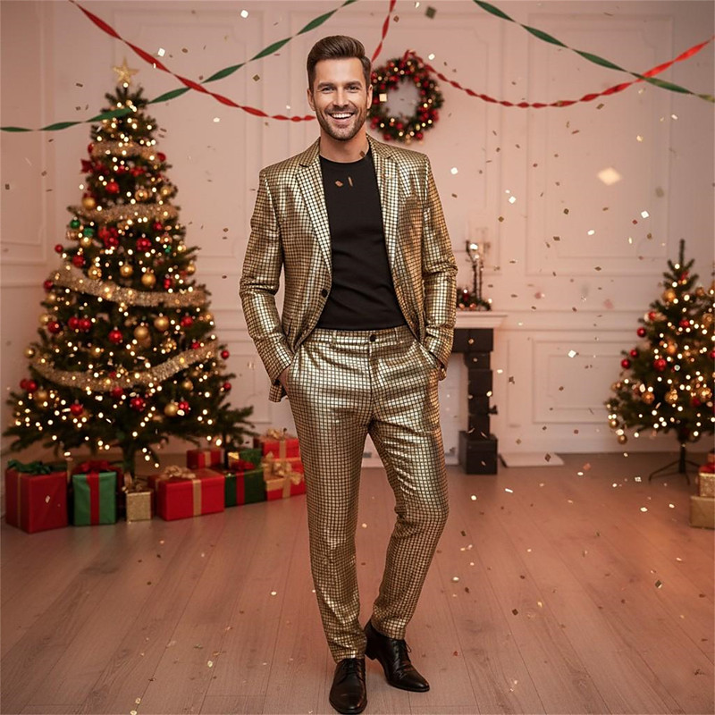 Set Disco 1980s Outfits Fancy Costume Suits Blazers Shiny Metallic Fancy Dress Men's Christmas New Year Performance Club Retro Theme Party Adults' Coat Pants