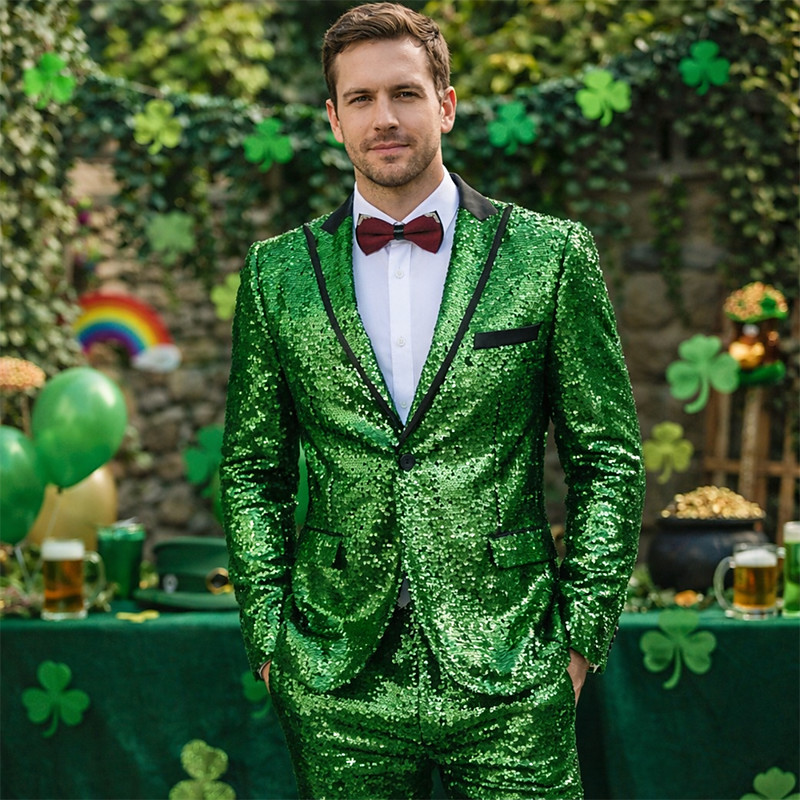 St.Patrick 2026 Retro Vintage 1980s Tuxedo Suits Blazers Disco Sequins Fancy Dress Men's Carnival Costume Christmas Halloween Carnival Cocktail Party Theme Party Pride Parade Adults' Coat