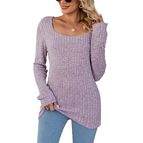 Per donna Felpa Moda Informale Tinta unica A coste A V Bottoni Manica lunga Top regolari Maglia Giornaliero Rosa Blu Primavera Autunno