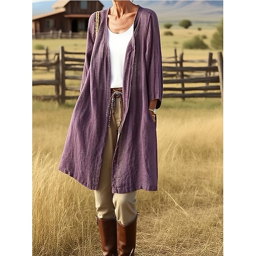 Per donna Giacca Casual Traspirante Aperturaanteriore Quotidiano Tinta unica Casuale Lungo Scollo a V Vestibilità comoda Manica 3/4 Capispalla Blu Viola Caffè Estate Primavera