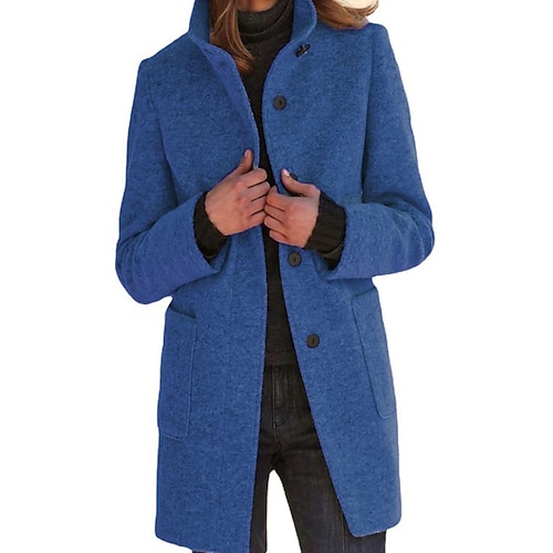 Per donna Cappotto Invernale Caldo Confortevole Patchwork Tasca Bottoni Vintage Moda Casual Tinta unica Vacanza Streetwear Casuale Abbigliamento quotidiano Lungo Collo alla coreana Vestibilit