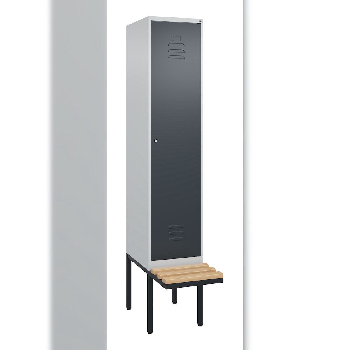 C+P Spind Classic PLUS, schwebender Sitzbank aus Buche 1 Abteil, HxBxT 212x40x82cm, Zylinderschloss, Hellgrau/Anthrazit von PROREGAL