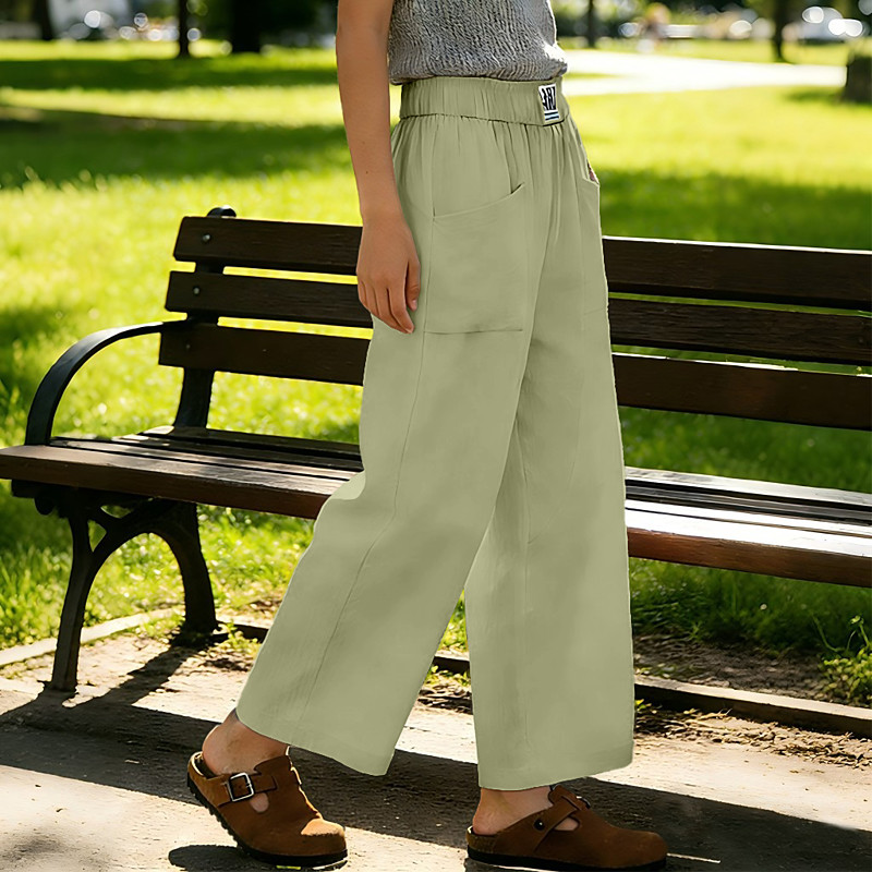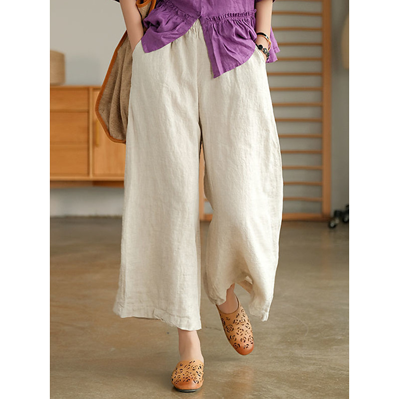 Women's Faux Cotton Linen Wide Leg Chinos Fashion Streetwear Simple Ankle-Length High Waist Plain Maillard Pocket Elastic Waist Baggy Comfort Breathability Soft Micro-elastic Daily Vacation Daily Wear