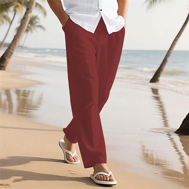 Men's Linen Pants Trousers Summer Pants Baggy Pants Beach Pants Elastic Waist Drawstring Straight Leg Plain Comfort Breathable Full Length Outdoor Casual Daily Vacation Classic Style Black White