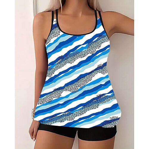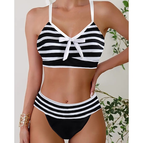 Per donna Costumi da bagno Due pezzi Birichino Costume da bagno Senza schiena Vacanza Abbigliamento da Spiaggia A righe Scollo a V Senza Maniche Costumi da bagno