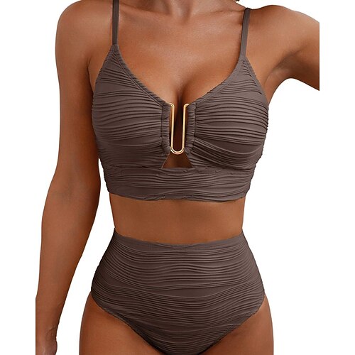 Per donna Costumi da bagno Due pezzi Birichino Costume da bagno Senza schiena Vacanza Abbigliamento da Spiaggia Tinta unica Scollo a V Senza Maniche Costumi da bagno