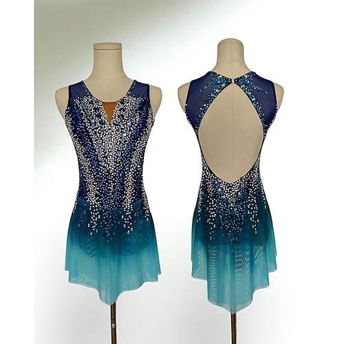 Abito da pattinaggio artistico Per donna Ragazze Pattinaggio sul ghiaccio Vestito Blu lago Patchwork Schiena aperta Spandex Rete Alta elasticità Allenamento Competizione Vestiti da pattinaggio sul