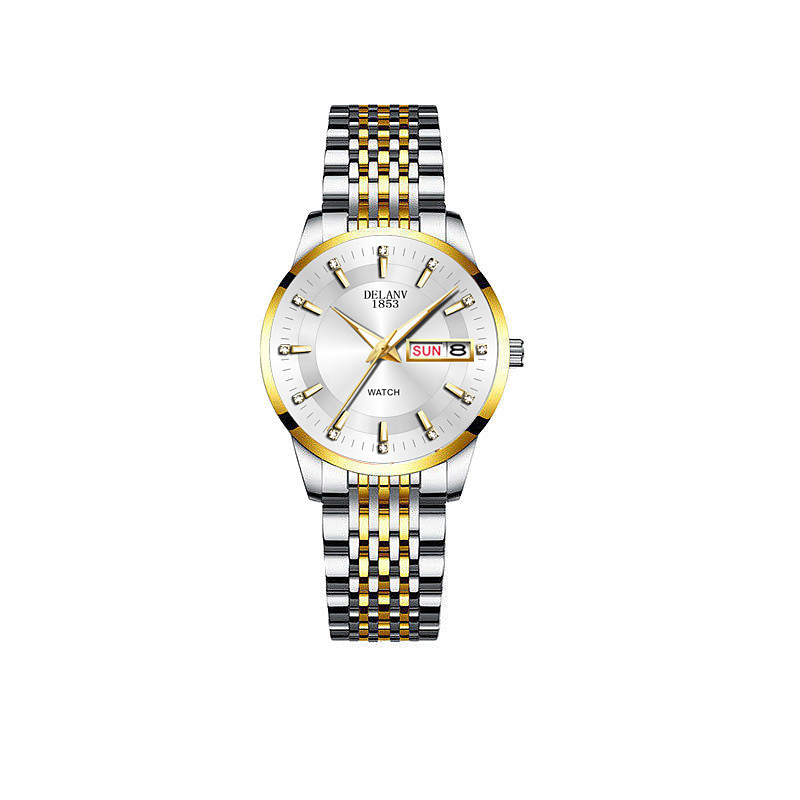 The New Deblve Brand Women'S Steel Band Watch With Ipx7 Water Resistance Calendar Luminous Day Display Quartz Watch Is A Fashionable Casual And Versatile Ladies' Wristwatch