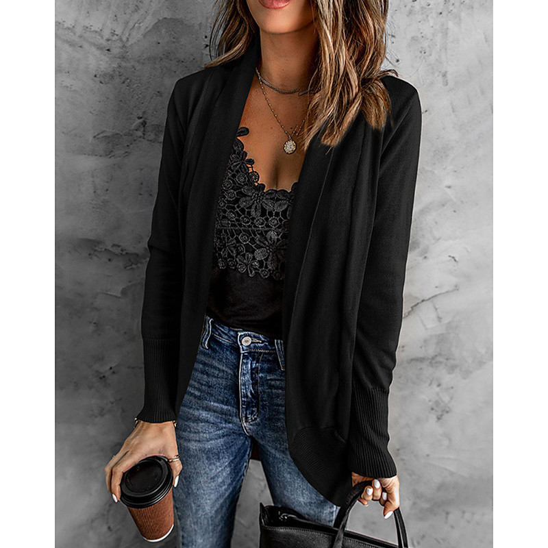 Women's Cardigan Fashion Work Casual Solid Color Shirt Collar Patchwork Long Sleeve Regular Tops Knit Formal Work Black White Fall Winter