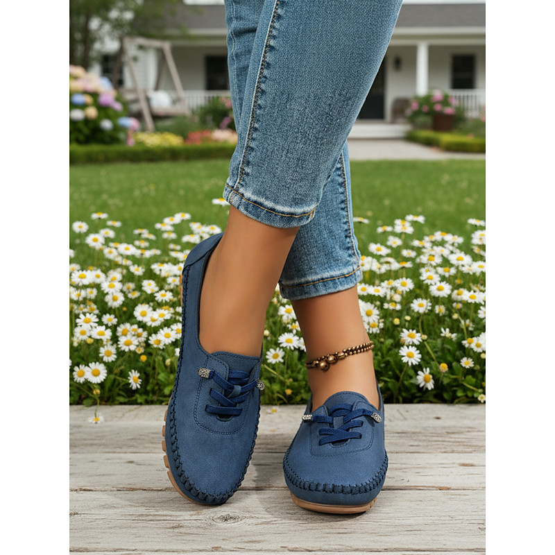 Women's Pink Moccasin Loafers with Stitching – Soft Sole Slip-On Flat Driving Shoes for Nursing, Casual Walking Daily Work