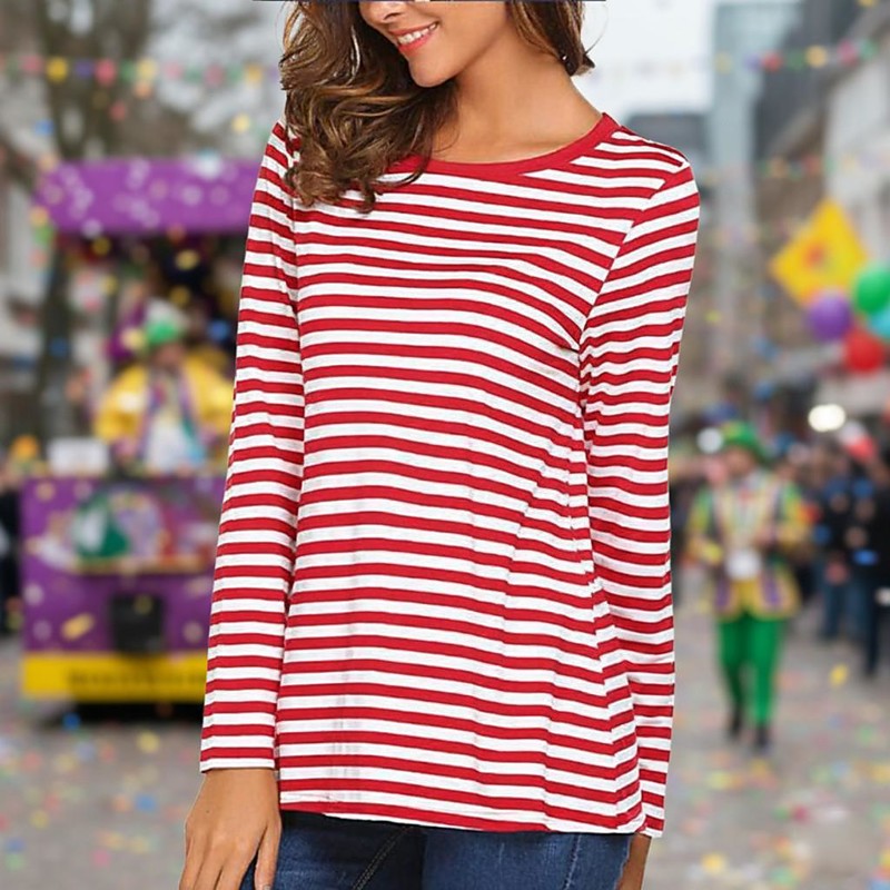 Carnival T-shirt Sweatshirt White and Red Striped Adults' Women's Carnival Performance Party Easy Carnival Costume Dress Up