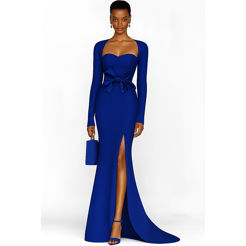 Mermaid Trumpet Floor Length Evening Gown Ball Gown Formal Dress Elegant Silky Long Sleeve Square Neck Wedding Formal Stretch Crepe with Bow(s)