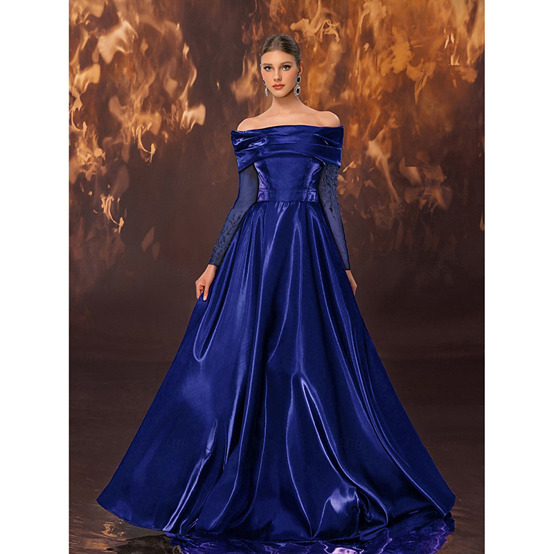 Mermaid Trumpet Floor Length Prom Dresses Evening Gown Ball Gown Formal Dress Elegant Glittering Celebrity Style Long Sleeve Off Shoulder Garden Party Wedding Stretch Satin with Pleats