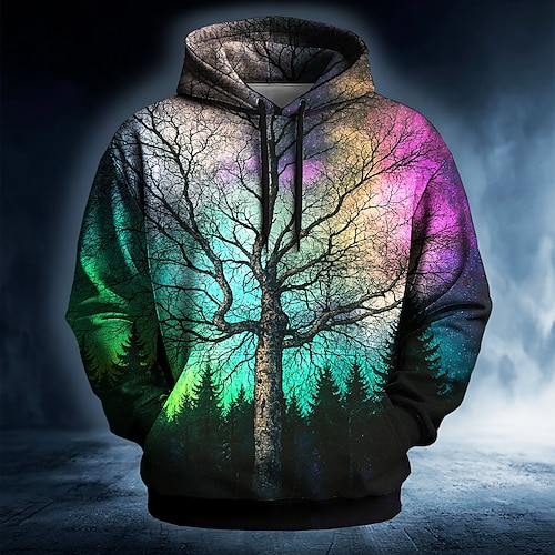 Herren Baum Optische Täuschung Pullover Ethnisch Cowboy Langarm Rundhalsausschnitt Streetwear Schwarz Kordelzug Herbst Winter Designer S M L XL XXL XXXL