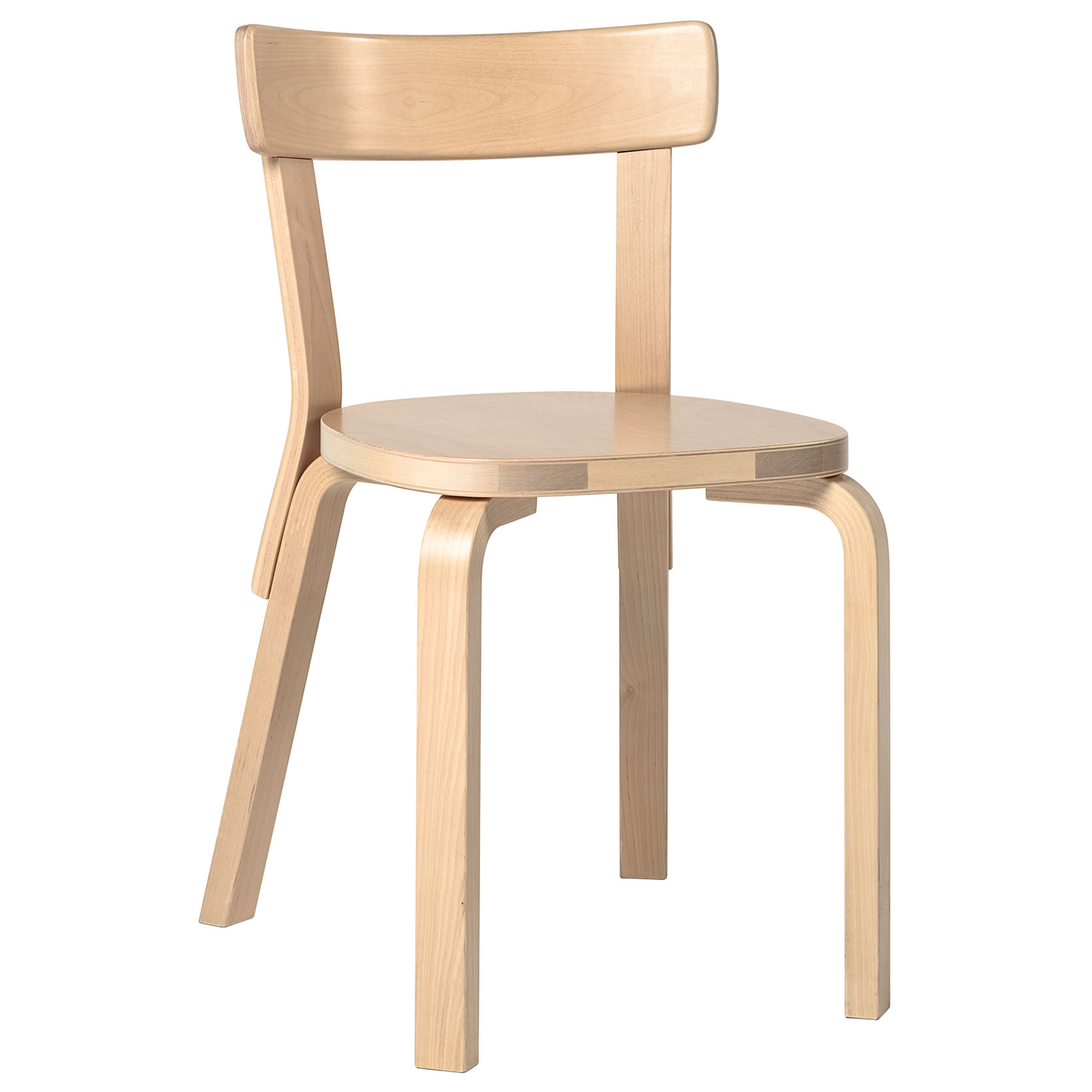 Artek - Chair 69 Clear Lacquered Legs Birch Veneer Seat - Matstolar - Alvar Aalto - Träfärgad - Trä