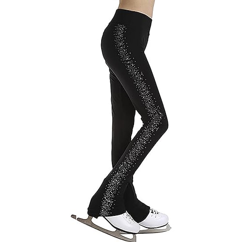 pantaloni da pattinaggio artistico da donna e da ragazza, pantaloni da pattinaggio sul ghiaccio, neri, elasticizzati, abbigliamento da pattinaggio per gare di allenamento, termici, caldi, con