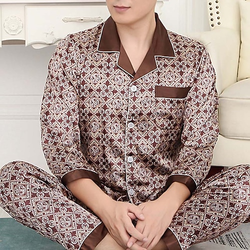 Per uomo Pigiami Top e pantaloni del pigiama Pigiama di seta 2 Pezzi Stampe Grafiche Semplice Comfort Casa Quotidiano Finta seta Traspirante Bavero Manica Lunga Pantalone Tasca Estate Primavera